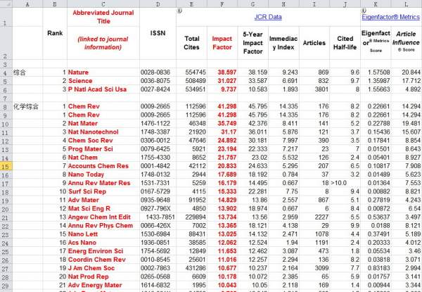 高分子科学72种期刊2012影响因子(附及其他所有按学科分类2012影响因子)