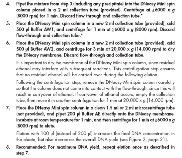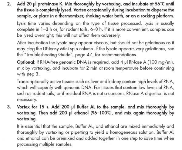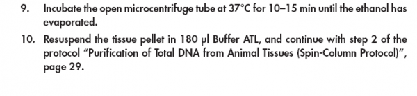 我从3年前的组织石蜡块中提取DNA。蜡块一直是室温通风保存的。 然后用QIAGEN Blood & Tissue试剂盒提取,结果DNA产物nanodrop测出来OD260/280=1.77,浓度是26.8ng/ul,峰不怎么好看。跑胶结果DNA从头到尾都是弥散的一条带。 我提取的步骤见图。 想问一下大概是什么原因会造成这样的问题? 1.png 2.png 3.png 4.png |