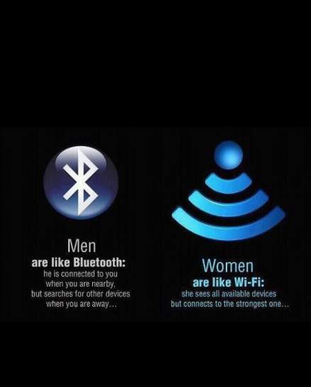 I just read a piece of Weibo... it's about the difference between men and women... Men are like bluetooth... he is connected to you when you are nearby, but searches for other devices when you are away... Women are like Wifi.... she sees all available devices but connects to the strongest one.... ![]() ![]() ![]() |