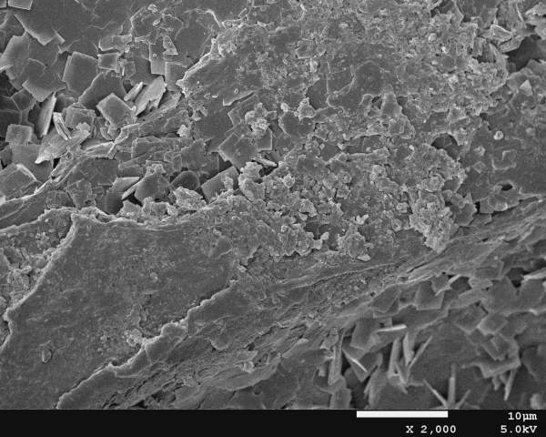 如图,样品脆断,扫描电镜观看到的现象,体系是尼龙6和另一种单体的共聚物,没有添加任何片状结构的无机物填料,想问下,图片中的片状结构是什么呢?还有些地方不是片状的,类似于颗粒状的结构又是什么呢?会不会是尼龙6的片晶呢? 1-5.jpg 1-8.jpg |