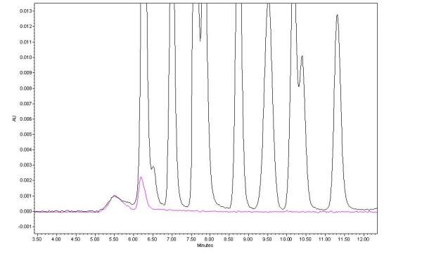 空针+标,如下,粉色为空针,黑色为标样
