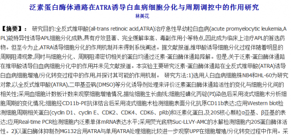 泛素蛋白酶体通路在ATRA诱导白血病细胞分化与周期调控中的作用研究