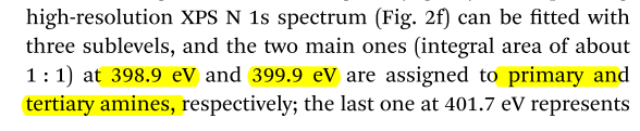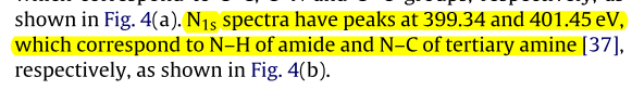 我查得的文献,关于峰的位置差别较大。文献1叔胺在399.9 eV, 文献2在 401.45,差别较大,我不知道如何选择。
