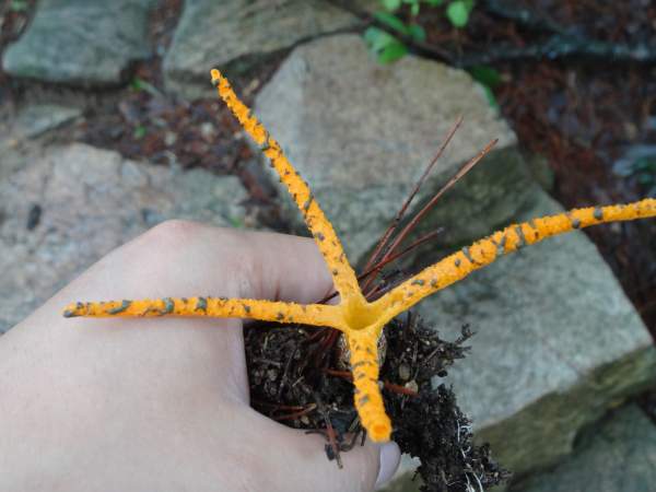各位高手看一下,这是什么物种。在山上采到的。形似鸡爪,表面有类似粪便东西,腥臭。