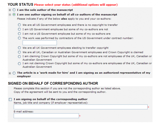 Langmuir投稿时候Journal Publishing Agreement怎么填啊