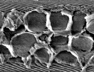 rt。 图的横向长度大约1.2um。里面柱的直径大概200nm。有做超级电容的同学给点意见吧。