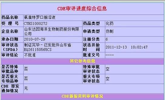 背景-1: 氨溴特罗口服溶液因主成分之一—盐酸克伦特罗的特殊性,CDE对其相关品种的审评较严格,国食药安监255号令加大了对其管理力度和2011年撤销盐酸克伦特罗片剂,虽然盐酸克仑特罗其他剂型有气雾剂、粉雾剂以及复方制剂可以保留,但是在2008年起氨溴特罗复方(片剂、分散片、颗粒剂、口服溶液)申请的临床及生产均没有被批准。 背景-2 目前CDE对氨溴特罗口服溶液的申请生产多家厂家已经结束了审评并发批件,但是我只能查到“山东达因海洋生物制药股份有限公司”2010年申请生产口服液在2011年12月给出的审评结论是“不批准生产”,目前仍有多家的口服液在审评中, 求助 想求助各位神通广大的大侠,2013年5月底、6月初结束审评的2家口服液的审评结论是批产还是不批产 |