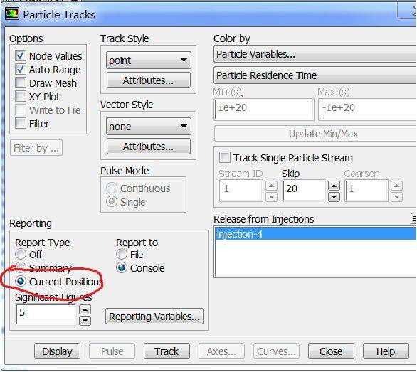 求助过一次,但结果不太好。 非稳态的DPM怎么将每个时间步的颗粒信息,包括位置、速度等,保存下来,不是要fluent中的data文件,而是希望能得到可以处理的具体的数据 希望大神们帮帮忙啊,万分感谢!!! 或者有没有办法在每个时间步自动运行图中的reporting部分中的report to |