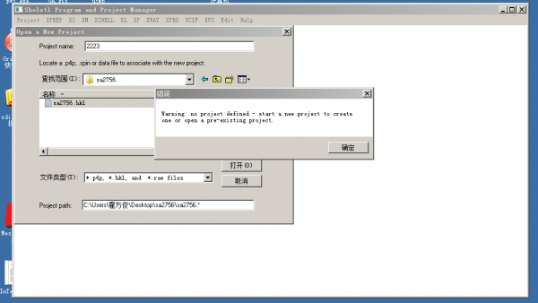 shelxtl 安装完在使用的时候出现Warning:no project ... ,WIN7 (32位)
