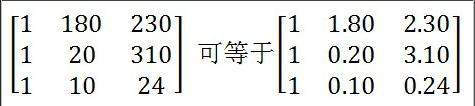 矩阵中某行或者某列出现公约数,把公约数简化后和原来的矩阵能等价吗?有没有原理可以追溯或证明?如附件中的公式。