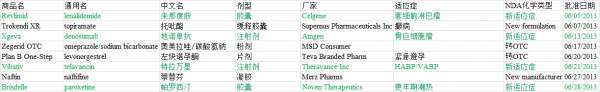 2013年6月FDA批准的新分子实体和新适应症已有6人参与