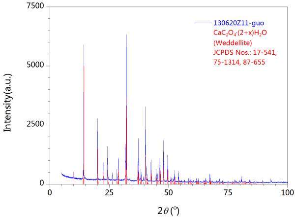 500金币-----求助草酸钙XRD解谱及比对图的绘制