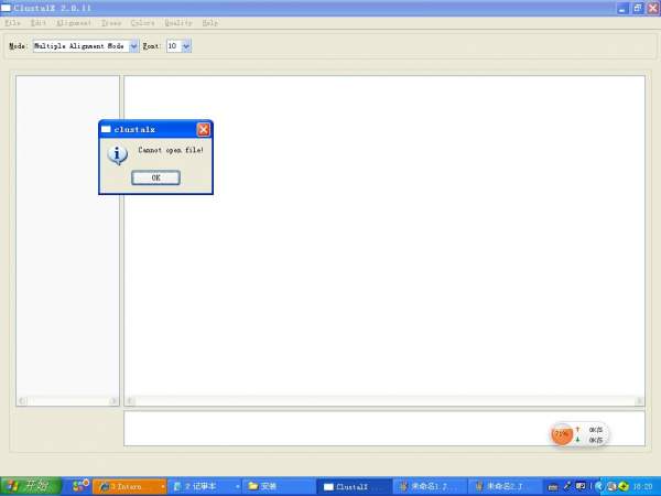 我用的是clustalx2.0.11, clustalx2.1也是如此。我是把序列以fasta格式写在txt文本中的。具体运行步骤如图所示,求解。 未命名0.JPG 未命名1.JPG 未命名2.JPG 未命名3.JPG |