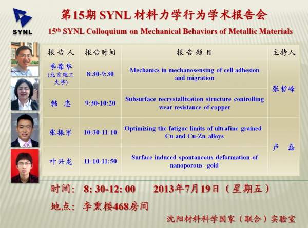 金属所举办SYNL材料力学行为学术报告会,欢迎参加