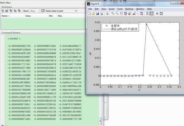 501个计算结果,见附件txt,我只是给出了全部计算值。判断大于0,目测太累,运行算法有点麻烦。 1.0e+002 * 0 -0.000000064736844 0.000000689377538 0.019148675806942 0.000007200000000 -0.000000064450713 0.000000688732997 0.019169110709547 0.000014400000000 -0.000000064250973 0.000000688086390 0.019189535335284 0.000021600000000 -0.000000063964376 0.000000687444926 0.019210219884812 0.000028800000000 -0.000000063676944 0.000000686805074 0.019231033064759 0.000036000000000 -0.000000063388667 0.000000686166842 0.019251975758272 0.000043200000000 -0.000000063099536 0.000000685530244 0.019273049177990 0.000050400000000 -0.000000062809541 0.000000684895295 0.019294254551826 0.000057600000000 -0.000000062518672 0.000000684262011 0.019315593122926 0.000064800000000 -0.000000062226920 0.000000683630408 0.019337066150289 0.000072000000000 -0.000000061934274 0.000000683000501 0.019358674908705 0.000079200000000 -0.000000061640724 0.000000682372308 0.019380420689205 0.000086400000000 -0.000000061346259 0.000000681745843 0.019402304799126 0.000093600000000 -0.000000061050869 0.000000681121124 0.019424328562651 0.000100800000000 -0.000000060754543 0.000000680498168 0.019446493320867 0.000108000000000 -0.000000060457270 0.000000679876991 0.019468800432015 0.000115200000000 -0.000000060159040 0.000000679257611 0.019491251271888 0.000122400000000 -0.000000059859840 0.000000678640045 0.019513847234069 0.000129600000000 -0.000000059559660 0.000000678024310 0.019536589730198 0.000136800000000 -0.000000059258487 0.000000677410425 0.019559480190305 0.000144000000000 -0.000000058956311 0.000000676798408 0.019582520063126 0.000151200000000 -0.000000058653119 0.000000676188277 0.019605710816232 0.000158400000000 -0.000000058348898 0.000000675580051 0.019629053936650 0.000165600000000 -0.000000058043638 0.000000674973748 0.019652550930819 0.000172800000000 -0.000000057737324 0.000000674369387 0.019676203325318 0.000180000000000 -0.000000057429945 0.000000673766989 0.019700012666856 0.000187200000000 -0.000000057121487 0.000000673166571 0.019723980522689 0.000194400000000 -0.000000056811938 0.000000672568156 0.019748108481241 0.000201600000000 -0.000000056501283 0.000000671971761 0.019772398151817 0.000208800000000 -0.000000056189510 0.000000671377409 0.019796851165828 0.000216000000000 -0.000000055876605 0.000000670785119 0.019821469176370 0.000223200000000 -0.000000055562554 0.000000670194912 0.019846253859110 0.000230400000000 -0.000000055247342 0.000000669606810 0.019871206912451 0.000237600000000 -0.000000054930955 0.000000669020835 0.019896330057807 0.000244800000000 -0.000000054613379 0.000000668437007 0.019921625040256 0.000252000000000 -0.000000054294598 0.000000667855349 0.019947093628823 0.000259200000000 -0.000000053974598 0.000000667275884 0.019972737616969 0.000266400000000 -0.000000053653363 0.000000666698635 0.019998558822694 0.000273600000000 -0.000000053330877 0.000000666123623 0.020024559089581 0.000280800000000 -0.000000053007125 0.000000665550873 0.020050740286562 0.000288000000000 -0.000000052682091 0.000000664980409 0.020077104308770 0.000295200000000 -0.000000052355757 0.000000664412254 0.020103653077971 0.000302400000000 -0.000000052028108 0.000000663846433 0.020130388542700 0.000309600000000 -0.000000051699126 0.000000663282970 0.020157312679419 0.000316800000000 -0.000000051368794 0.000000662721890 0.020184427492229 0.000324000000000 -0.000000051037095 0.000000662163220 0.020211735013874 0.000331200000000 -0.000000050704010 0.000000661606984 0.020239237306033 0.000338400000000 -0.000000050369522 0.000000661053209 0.020266936459890 0.000345600000000 -0.000000050033613 0.000000660501922 0.020294834596850 0.000352800000000 -0.000000049696262 0.000000659953148 0.020322933868516 0.000360000000000 -0.000000049357452 0.000000659406916 0.020351236458005 0.000367200000000 -0.000000049017163 0.000000658863254 0.020379744580046 0.000374400000000 -0.000000048675375 0.000000658322188 0.020408460481680 0.000381600000000 -0.000000048332068 0.000000657783749 0.020437386442454 0.000388800000000 -0.000000047987222 0.000000657247964 0.020466524776016 0.000396000000000 -0.000000047640816 0.000000656714863 0.020495877829500 0.000403200000000 -0.000000047292828 0.000000656184476 0.020525447985170 0.000410400000000 -0.000000046943238 0.000000655656833 0.020555237660516 0.000417600000000 -0.000000046592023 0.000000655131965 0.020585249309047 0.000424800000000 -0.000000046239161 0.000000654609903 0.020615485420910 0.000432000000000 -0.000000045884630 0.000000654090678 0.020645948523926 0.000439200000000 -0.000000045528406 0.000000653574322 0.020676641183554 0.000446400000000 -0.000000045170465 0.000000653060869 0.020707566004348 0.000453600000000 -0.000000044810785 0.000000652550351 0.020738725630526 0.000460800000000 -0.000000044449340 0.000000652042801 0.020770122746335 0.000468000000000 -0.000000044086105 0.000000651538254 0.020801760077100 0.000475200000000 -0.000000043721057 0.000000651036745 0.020833640390322 0.000482400000000 -0.000000043354168 0.000000650538308 0.020865766495889 0.000489600000000 -0.000000042985412 0.000000650042979 0.020898141247214 0.000496800000000 -0.000000042614764 0.000000649550794 0.020930767542057 0.000504000000000 -0.000000042242195 0.000000649061791 0.020963648323631 0.000511200000000 -0.000000041867679 0.000000648576006 0.020996786580806 0.000518400000000 -0.000000041491186 0.000000648093477 0.021030185349622 0.000525600000000 -0.000000041112689 0.000000647614244 0.021063847714235 0.000532800000000 -0.000000040732158 0.000000647138345 0.021097776807447 0.000540000000000 -0.000000040349563 0.000000646665819 0.021131975811792 0.000547200000000 -0.000000039964875 0.000000646196708 0.021166447961315 0.000554400000000 -0.000000039578061 0.000000645731053 0.021201196540962 0.000561600000000 -0.000000039189090 0.000000645268894 0.021236224889217 0.000568800000000 -0.000000038797932 0.000000644810275 0.021271536398235 0.000576000000000 -0.000000038404551 0.000
