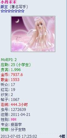常来分子生物的童鞋 头像都非常有特点啊 大家推荐一下啊 可以是自己的 也可以是别人的 一般操作步骤: 选择高级回复 高级回复.jpg 然后选择上传图片 上传图片.jpg 然后@某某某 就是这个头像的所有者的ID 就可以了。 也可以加上您的评论。 只要参与就会有奖励啊!!! 大家推荐的的排名前三位的会有惊喜啊!!! @amisking @古可ぷ @缩++影 @小丹木木 @1949stone @myprayer @kx444555 @gyesang @cdl007 @天使托 @gwbk @blackrose8089 @孙启亮 @凌波丽 @dhd997 @西瓜 @qinhy @yuliansheng @ 空谷幽风 @wanhscn @lxj341401 [ Last edited by 1949stone on 2013-7-5 at 16:45 ] |