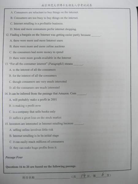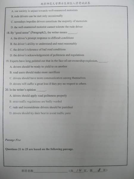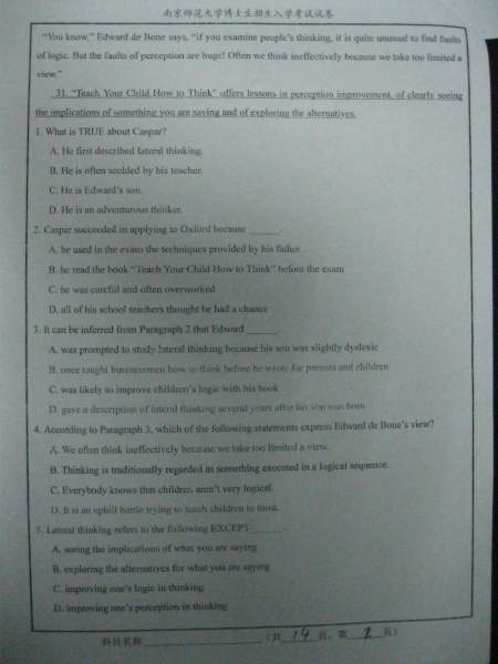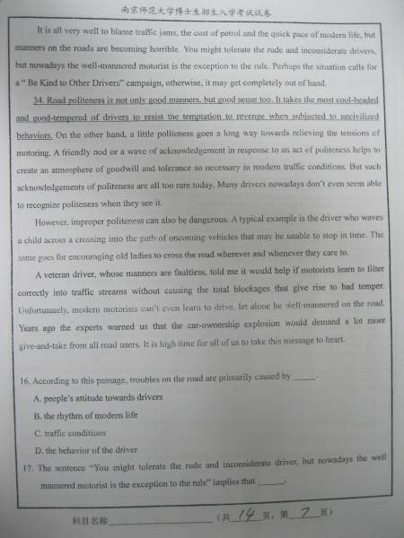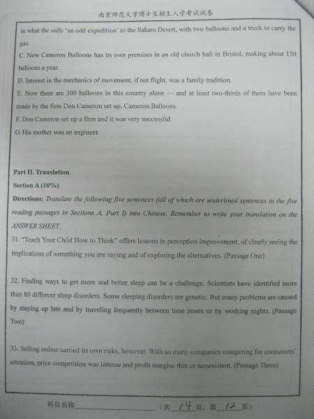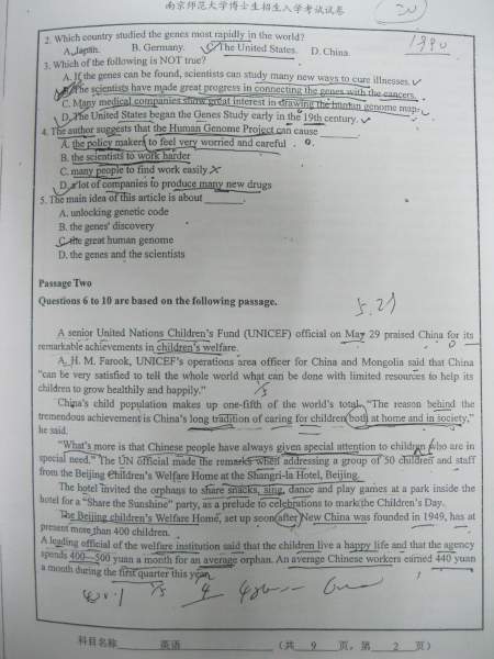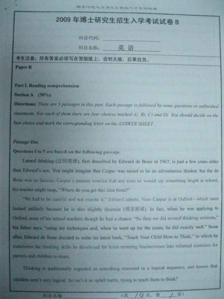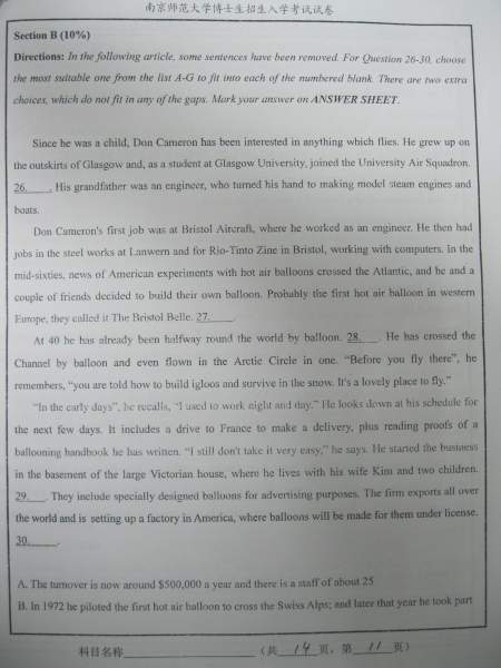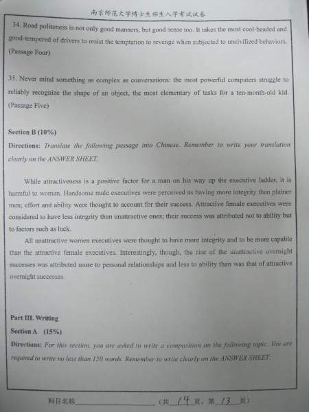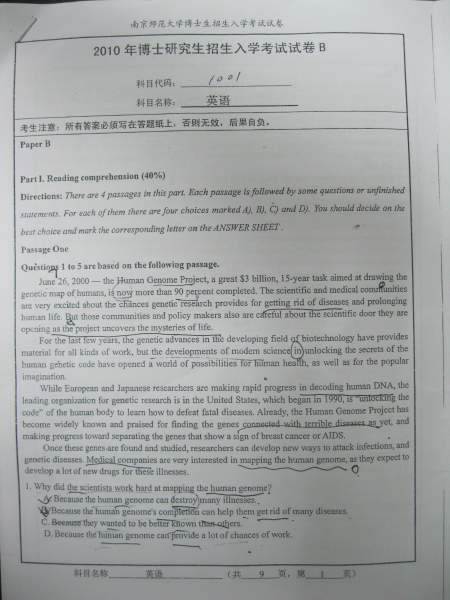 【考博真题】南京师范大学09、10年考博英语A、B卷试题(照片版)