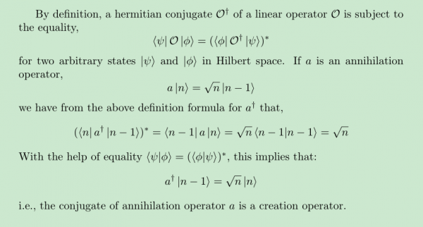 | 设+是产生α态粒子算符,-是湮灭α态粒子算符,对+|>=|α>取伴态成了<|- = <α|,产生和湮灭算符是互相共轭的? |