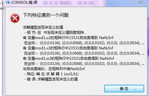 哪位虫友帮帮忙,我的comsol计算时出现如下错误