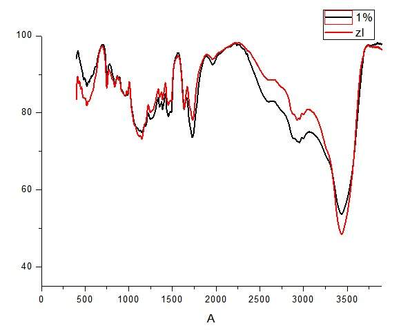 ![]() 是一个PMMA-BA-PEG高聚物,图里zl(红线)是聚合物的,1%(黑线)是聚合物物理掺杂了1%TiO2纳米粒子的。这个图能说明什么问题吗?聚合物和TiO2的作用?峰强度不一样是什么导致的呢?对于红外不怎么懂,请大家给指点一下 QQ截图20130710144643.jpg |