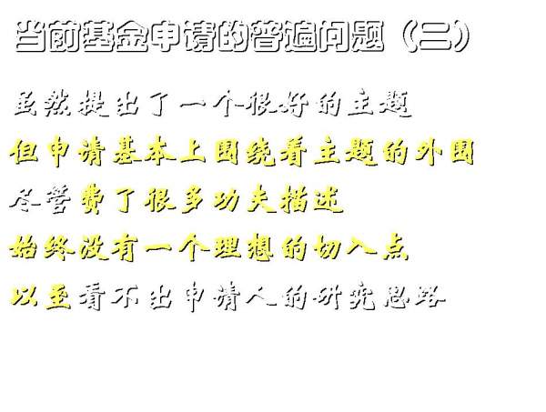 今尝试把“提高基金申请质量”PPT文件中几张幻灯片上传到小木虫上,好像有点麻烦,还不知博友们能否打开,并看清楚。