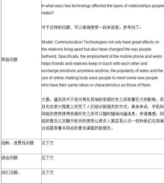 (拒绝非正式的用法。)The technology has changed the people’s interaction in very enhanced manner. Earlier people used(前后时态必须一致。)to wait and try to find easy ways(名词单复数)to contact their friends or relatives leaving far. In the past, there was no (词汇使用不当,应该改成effective)technology to contact others or to establish any communication between two people. And(重要的连接词,表示本句和上一句共同解释为什么“人们一直在期待找到更有效的通讯方式。”)the drawback ofthe past communication systems was that they (指代不清,这里指代的是communication systems)were too (表示“太”。)slow and were time-consuming (表示“费时”), including (这是应该使用分词形式,表示对主句的communication ways的具体描述。)the telegrams, the letter etc. Not only that,(这里需要连接词)people used to be afraid to write their personal feedbacks or things to their loved ones because of (because of 强调“外因”;due to 强调“根据”)information security (根据上下文理解,此处应该表达的是“信息安全”)of communication. (They worried their letters might be stolen or read by some strangers.这里可以继续描述人们的担心。)
