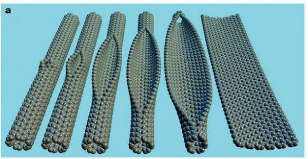 请问如何用3ds max 画上面这种碳纳米管,完全开口的和完全闭合的没问题,但是前面4个半开口的不知道该如何画,如果用ffd修改器的话,小球都被拉变形了,求解。