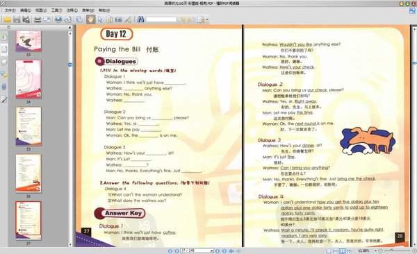 内容介绍: 在本书中涉及公交车、银行 旅馆、医院、打电话等多个场景,涉及英美节日、幽默故事、娱乐体坛明星、政治要闻的不同主题,几乎囊括了我们日常生活的方方面面。装帧设计则特意营造了一种轻松活泼的氛围,以便读者以一种轻松的心情坚持每天收听一段英语交流内容。不出100天,你将熟练地听懂几千条表情达意的句子。希望每个读者在第100天里合上本书,舒展一下双臂,得出一个结论:“English has none of difficulty!” .. 1.jpg 2.jpg [ 来自小组 皇家神龙教 ] |