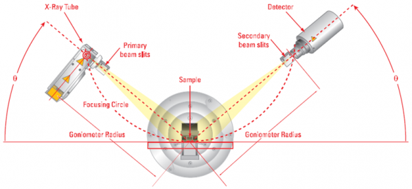 老师讲的是对的,测试时粉末堆得过低或过高的确会使图谱向左或右平移,你从几何上简单推导一下就会明白的。 粉末衍射虽说是准聚焦测试,但规定衍射角是入射X射线与焦平面的夹角,对于每台仪器,衍射圆以样品台上某定点为圆心,X射线源和探测器位于半径为R的圆周上,而以位于衍射圆圆心的测试点、X射线源和探测器确定的聚焦圆其曲率半径r随测试角度变化而变化。测角仪校准时要求载样片平面处于焦平面,满足聚焦圆与载样片平面相切于一点是最理想的状态,测试点应为切点,即当样品铺设面与载样片平面共面时,测量角度是准确的。当样品平面低于载样片平面时,测得的角度向低角侧位移,相反则向高角侧位移。 通常情况下,样品平面与载样片平面不共面产生的位移误差与仪器零点误差很难区分,只有通过对光操作完全排除后者影响才能确定是否单纯系制样不标准所致。 如果所有峰的角度位移量都一致(整体平移),表明是系统误差,须校准仪器零点或重新制样;如果随角度增大,衍射峰角度向高角位移且位移量逐渐增大表明晶胞边长缩小,衍射峰角度向低角位移且位移量逐渐减小表明晶胞边长增大。 |