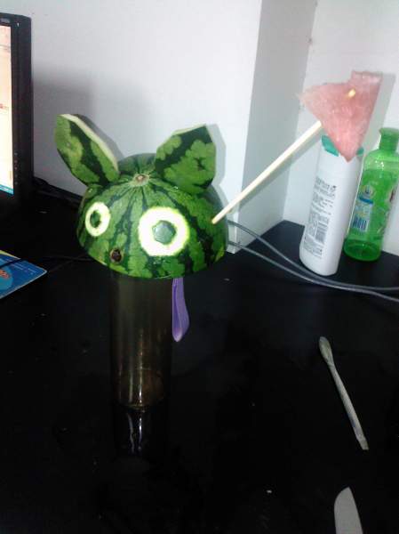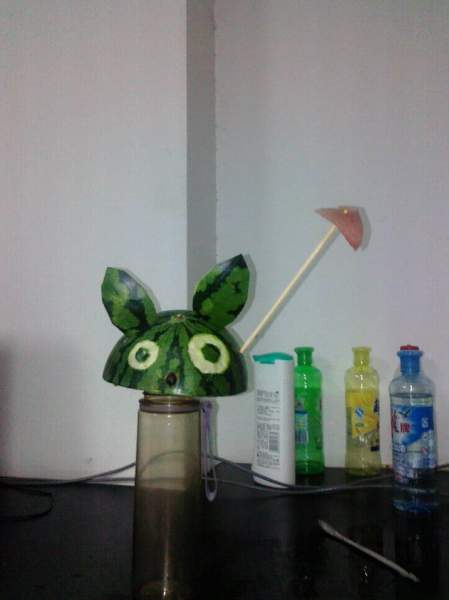 ,最后切耳朵。。。好可耐哦。。。下面你懂的,切片瓜做伞,反正龙猫打伞不为遮雨,看过动漫的都知道哈