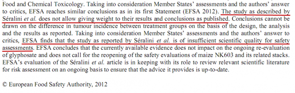 迄今为止,没有任何一个科学研究能够证明转基因食品对人体健康有损害。有少数声称转基因食品有害的研究,全都已经被学术界否定。澳大利亚和新西兰食品标准局(FSANZ)专门做了一个网页评论:http://www.foodstandards.gov.au/ ... mtableofstudies.cfm 反转者基本上都对学术界的主流观点都不了解,把一篇已经被学术界批得体无完肤的垃圾论文当作宝贝,对各国权威机构的评论均选择性失明。 这篇报道无非是把2012年的那篇烂文章再炒一次而已。2012年9月法国学者Séralini 发表的转基因玉米致癌论文具有严重缺陷,其中一个主要的缺陷是实验采用的老鼠本身就是一个易患癌的品系,尤其是长到2岁时进入老年期,无论是否吃转基因食品都很容易长出肿瘤。 这篇论文中提到的转基因玉米NK603在美国于2000年被批准用于食品,在加拿大于2001年被批准用于食品,已经被北美消费者吃了十多年,这篇论文发表后美国和加拿大的食品监管部门均未做出任何安全警示。反而在2012年11月美国加州的全民公投中否决了要求转基因食品标注的提案。该研究论文已经遭到多个政府机构的否定: 加拿大卫生部的否定 http://www.hc-sc.gc.ca/fn-an/gmf-agm/seralini-eng.php#fnb1 澳大利亚和新西兰食品标准局(FSANZ)的否定 http://www.foodstandards.gov.au/ ... mtableofstudies.cfm 欧洲食品安全局(EFSA)的否定 http://www.efsa.europa.eu/en/efsajournal/pub/2986.htm EFSA 否定.png |