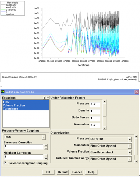 fluent VOF中continuity值达到100,这样结果可靠么?怎样才能减小连续性残差值啊!!已有1人参与