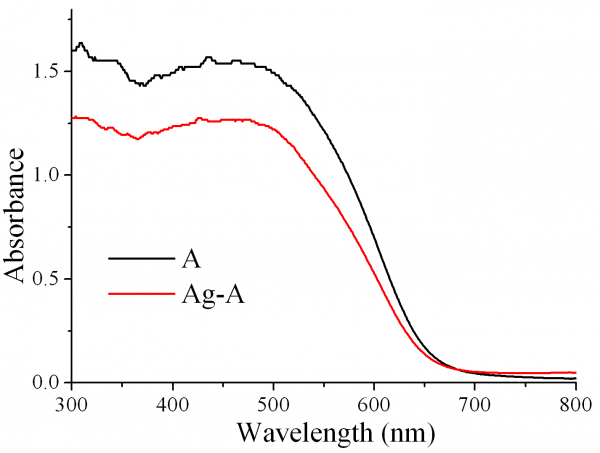 最近在所合成的半导体催化剂A上沉积Ag纳米颗粒,根据表面等离子体共振效应可知,沉积Ag 之后其光吸收范围应该变宽才对呀,可是我做过DRS之后,所得的结果与理论上不同,求解释!下图为所测的图。 Graph114.png |