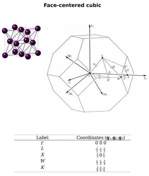 请教各位大侠,siesta3.1手册上第62页关于能带结构设置看不明白: 这里举的例子是个面心立方晶格的布里渊区k点,但不明白是怎么取的。 我查了fcc的k点坐标: 怎么手册上不是这样取的啊 比如X点的坐标是 手册上怎么是 [ Last edited by xiongxiong5712 on 2013-7-16 at 15:56 ] |