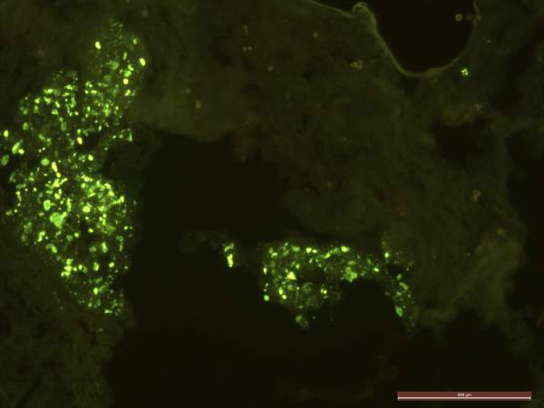 那位高手做过荧光原位杂交,请指导一下本实验的需要改经之处,不甚感激! 实验结果,有荧光的地方往往是细胞消化不好的地方,还有我到探针到底有没有杂交上? 1-wang14.jpg,探针杂交图 13-2.jpg探针杂交图 HE2.jpg |