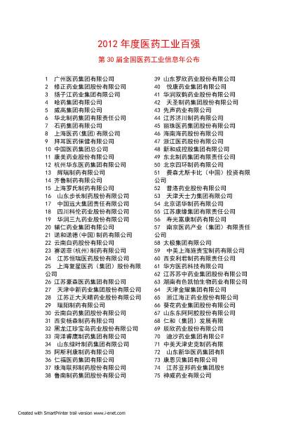 本内容由用户自主发布,如果其内容涉及到知识产权问题,其责任在于用户本人,如对版权有异议,请联系邮箱:xiaomuchong@tal.com - 附件 1 : 2012年度医药工业百强(第30届全国医药工业信息年公布)_.pdf