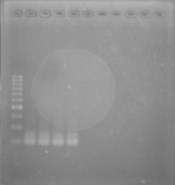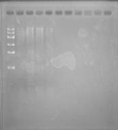 第一张是DNA跑胶图片(15000的Marker),第二张是Pcr产物跑胶图片(用的是2000的Marker,但我比对了一下,200~250bp左右),引物用的是