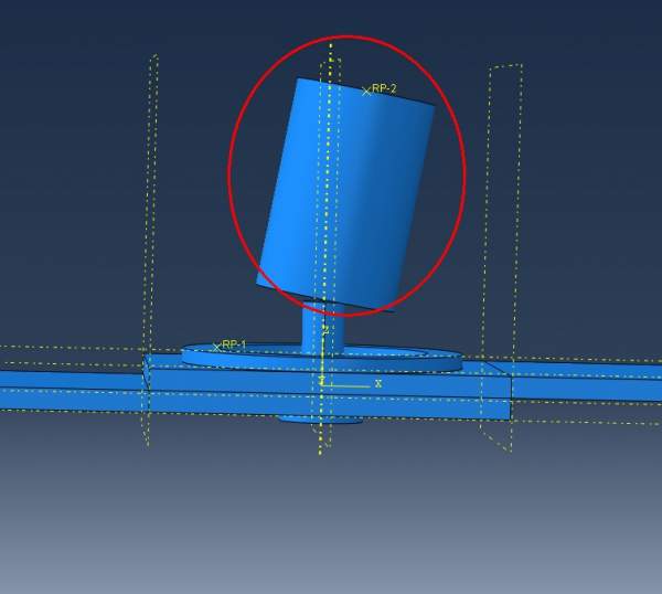 我目前用abaqus在做复合材料摆碾铆接的分析,无法实现铆头的摆碾运动,如何设置才能使铆头一边摆动一边往下碾压呢??? 下面附有模型图片,及本人最近所做模拟,没有成功,设置有何问题请大神指点!!! 摆碾铆接模型示意图.jpg |