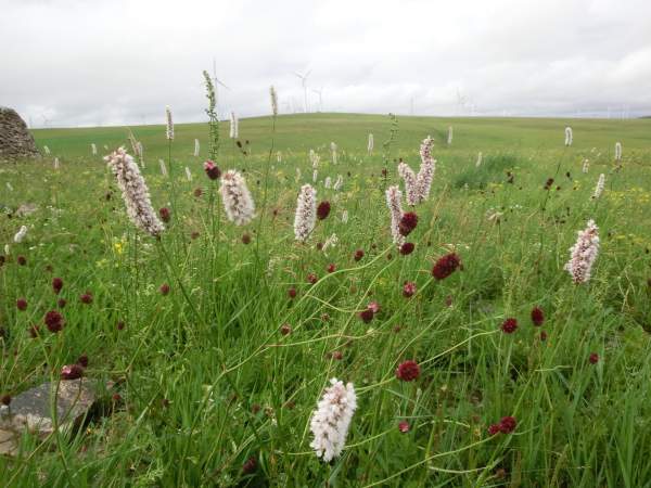 上面开花的是两种植物,一种是蔷薇科植物地榆,一种是蓼科的植物拳参。