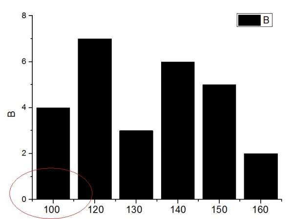 可以新建一列数据,这一列数据不要包含110,就100 120 130 140,然后双击图像X轴,选择Tick-indexed datas,里面选择新建的这列不包含110的数据的就可以了。