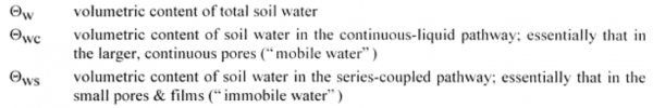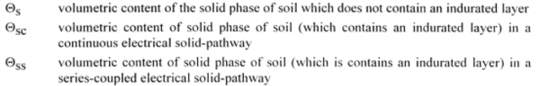 1、Indurated layer “Indurate” means "harden". So "Indurated layer" represents a certain layer in the soil which is hardened, say, "Hardening soil layer". 你可以理解成“土壤板结”。就是土壤里边有一层特别密实(Compact)的土层. 这样的话,对土壤剖面的物理特性是有影响的。 2、surface conductance “Because most soil minerals are insulators, electrical conduction in sufficiently moist soils is primarily via the electrolytes (salts) contained in the water occupying the larger pores. The contribution of the solid phase to electrical conduction in moist soils, the so-called surface conduction, is primarily via the exchangeable cations associated with the clay minerals (though the latter are actually present in the aqueous phase). Surface conductance is generally smaller than that of the pore-solution because the former electrolytes are more limited in their amounts and mobilities.” surface conductance 意思是土壤表面电导率。土壤电导率主要通过孔隙中的溶液来体现。表面电导率是土壤固态表面的可交换的阳离子体现的电导率,比溶液中的电导率较小。 表面电导率的具体用法见 《Soil Salinity Assessment》中P16-17 http://muchong.com/bbs/viewthread.php?tid=5760845 这个帖子中的第三本书。 |