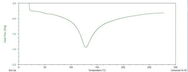 在50℃附近貌似有个台阶,有点像玻璃化转变。你后面的熔融吸热峰太大了,坐标放得很大,前面的玻璃化转变不是很明显。建议将坐标放小,这样应该会比较明显。
