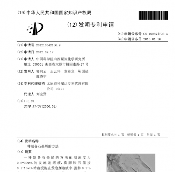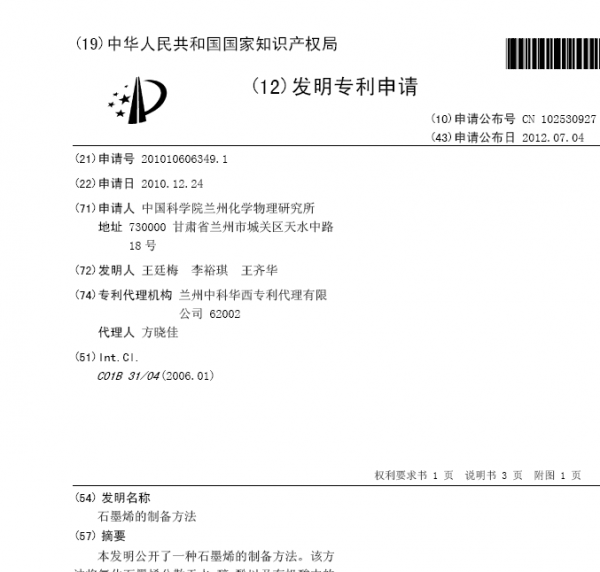 合成石墨烯的注意啦---113篇中科院关于石墨烯合成与设计的专利