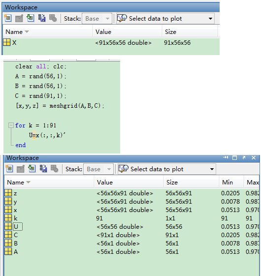 生成的东西不是我要的哇。。我是要在Workspace窗口生成A1,A2,A3,A4,A5,A6...........................................A90,A91,共91个56*56的矩阵啊