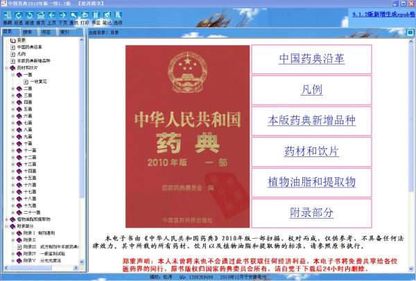 中国药典2010年版一部1.2版.exe 2010版中国药典一部1.2版,为exe格式的电子书,可以复制粘贴,制作非常精美。 本电子书包括以下内容: 1、中国药典沿革 2、凡例 3、本版药典(一部)新增品种名单 4、药材和饮片 5、植物油脂和提取物 6、附录 网盘下载地址: http://www.sudupan.com/sudupan/dz_1053787.aspx |