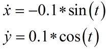 当机器人选定了一种轨迹时,比如圆轨迹,如图1,机器人末端的速度应该是轨迹的导数,如图2。