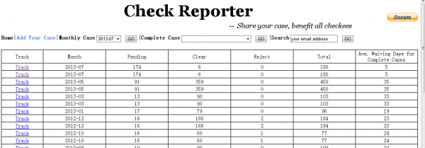 http://www.checkee.info/ 6月中旬广州J1签证,回来之后每天打开电脑就看签证状态,至今无更新,今天打开check reporter,发现居然只有隔月显示了,六月份的签友们,大家是否安好啊 QQ截图20130731100946.png |