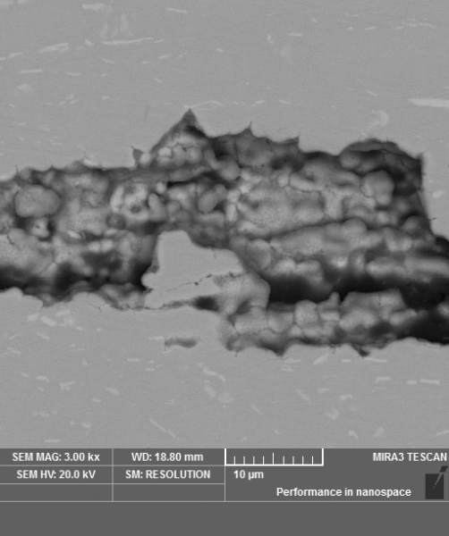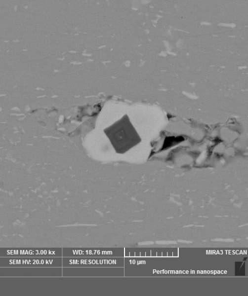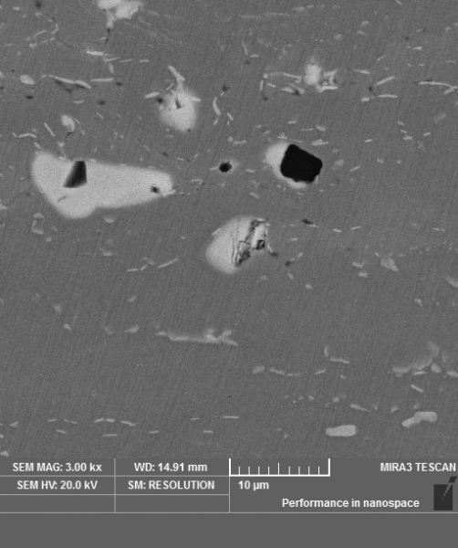 哎呦,还真是这个呦,那我就不能把这个图放论文中了,免得不好解释了!我查了一下我们买的这个材料的成分里边没有“Sc“这个成分,黑色的方块是否也是研磨的过程中带进去的呢?但是这个东西总是出现在块状的碳化物上,如果是研磨过程中带进去的话,应该更加容易嵌入较软的基体中才是!并且,碳化物和黑色物之间的连接完全没有间隙,更像析出!