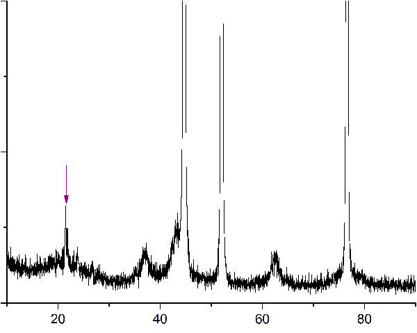 物质应该有Ni Co O 三种元素,EDX的结果也可相应证明,样品退火前有明显的Co(OH)2的峰,也有Ni(OH)2的峰,但是退火后在 37 43 63度附近有三个峰可能是NiO的峰,而在21度附近的峰找不到对应的物质,请大神指点。 xrd.gif |