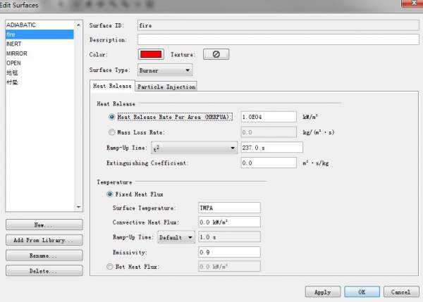 用PyroSim建立模型,火源设置为10MW/m2,、t2稳定火源,在237s时达到最大,如图。 但运行后结果显示,在300s后的HRR下降到0了。这是什么原因,我需要让火源237s后保持在10MW,请各位大神解答,感激不尽! 火源设置.jpg HRR.jpg |